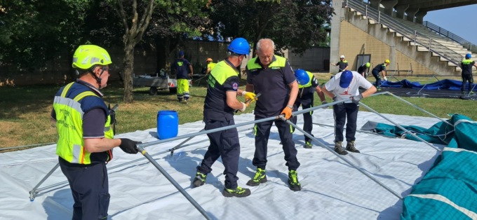 Lo scenario simulato prevedeva forti piogge con esondazione di una roggia locale, che ha causato allagamenti in alcune abitazioni. In risposta all’evento, i volontari hanno allestito un campo base operativo con due tende per il primo soccorso alla popolazione, utilizzato idrovore per prosciugare i locali colpiti dall’acqua e messo in sicurezza gli argini con sacchi di contenimento. In alcune zone, la roggia risultava ostruita da alberi caduti: è stato quindi necessario l’impiego di motoseghe per liberare il flusso d’acqua e prevenire ulteriori esondazioni. Tutte le attività sono state coordinate sul campo, con i capisquadra a dirigere le operazioni, verificare l’uso corretto dei dispositivi di protezione individuale (DPI) e mantenere alto il livello di sicurezza.