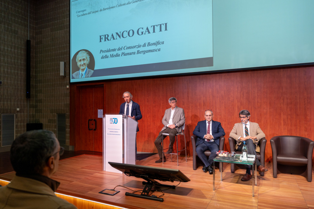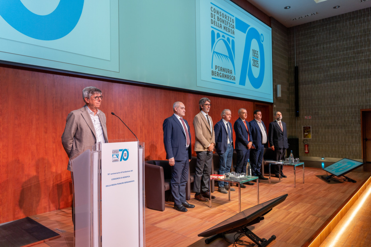 Settant’anni di storia per il Consorzio di Bonifica della Media Pianura Bergamasca: un traguardo importante celebrato con un convegno dal titolo “La cultura dell’acqua: da Bartolomeo Colleoni alla Generazione Z”. Per festeggiare il compleanno è stato pubblicato anche un volume che racconta non solo le opere realizzate negli ultimi dieci anni, ma anche i volti delle persone che al Consorzio ci lavorano, dal camparo all’ingegnere.
