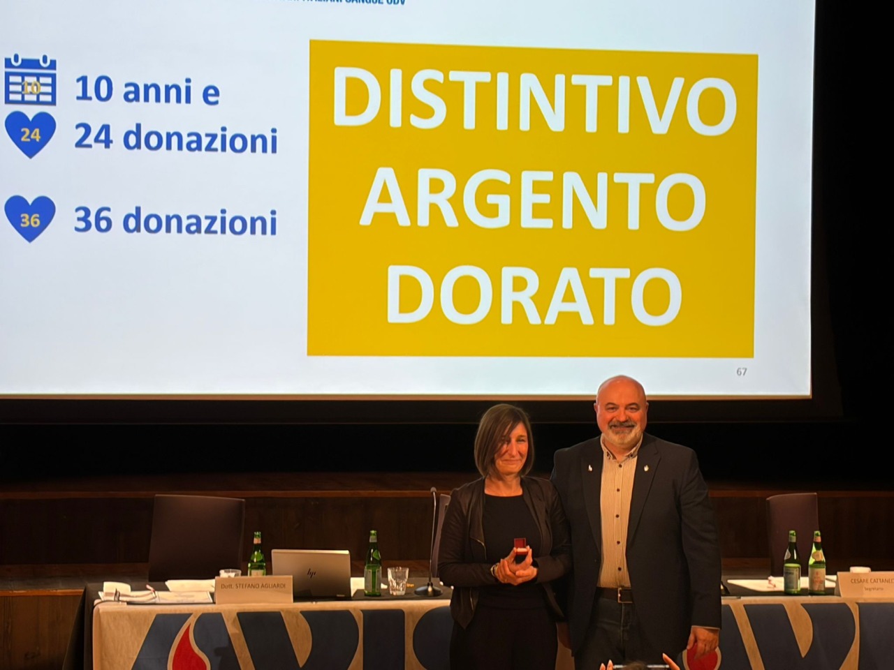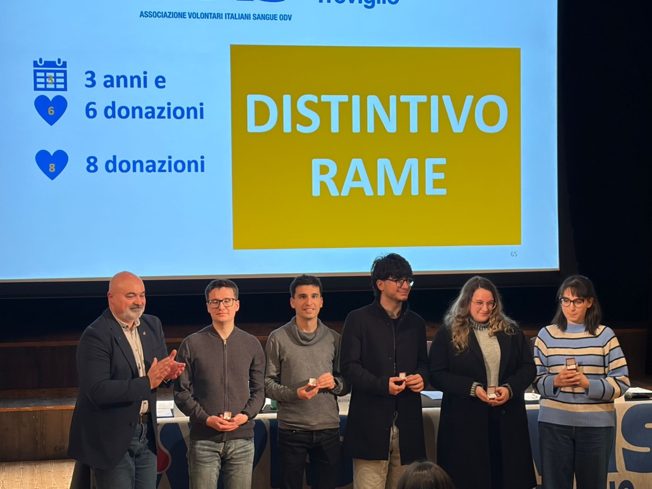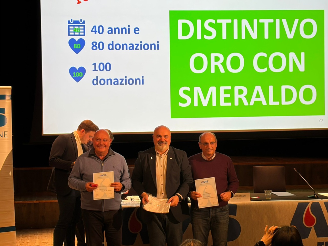 La seconda parte della serata è stata dedicata alle premiazioni, momento particolarmente sentito perché celebra chi ha fatto della donazione un impegno costante nel tempo. Per il distintivo in rame, riservato a chi ha raggiunto tre anni e sei donazioni oppure otto donazioni, sono stati premiati Erika Asperti, Laura Bessocchi, Riccardo Callari e Lucrezia Mantegazza. Per il distintivo in argento, cinque anni e dodici donazioni oppure sedici donazioni, sono stati chiamati Raffaello Mazzoleni ed Eliano Betti. Il distintivo in argento dorato, dieci anni e ventiquattro oppure trentasei donazioni, è stato consegnato a Laura Rota. Per il distintivo in oro, venti anni e quaranta oppure cinquanta donazioni, sono stati premiati Emanuele Renzi, Lorenzo Bassi, Irina Ciocca e Renato Gatti. Con il distintivo in oro rubino, trent’anni e sessanta oppure settantacinque donazioni, sono saliti sul palco Davide Bertocchi e Carlo Franco. Il distintivo in oro smeraldo, quaranta anni e ottanta oppure cento donazioni, è stato consegnato a Enrico Caspani. Infine il distintivo in oro con diamante, riservato a chi ha raggiunto le centoventi donazioni, un traguardo che racconta una vita di generosità, è andato a Domenico Bosco.