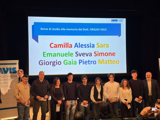 La serata si è conclusa con le premiazioni delle borse di studio alla memoria del dottor Orazio Viele e con la consegna delle benemerenze ai donatori che hanno raggiunto traguardi importanti nel loro percorso di generosità. Il dottor Viele, notaio scomparso 17 anni fa, ha lasciato all’Avis di Treviglio un lascito con un vincolo preciso: sostenere i giovani. Da allora l’associazione assegna ogni anno borse di studio ai ragazzi meritevoli sulla base dei risultati scolastici, trasformando un gesto di memoria in un investimento concreto sul futuro. Quest’anno sono stati premiati Camilla Baldelli, Alessia Bassi, Sara Chignoli, Manuele Galbiati, Sveva Guareschi, Simone Putelli, Giorgio Mandello, Gaia Rossoni, Pietro Scotti e Matteo Vecchi. Un lungo applauso ha accompagnato ciascuno di loro tra sorrisi, fotografie con i genitori e l’emozione di un riconoscimento che unisce merito e solidarietà.