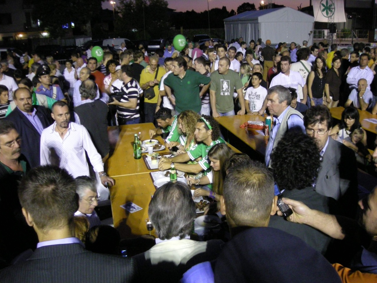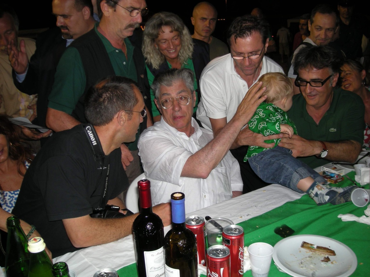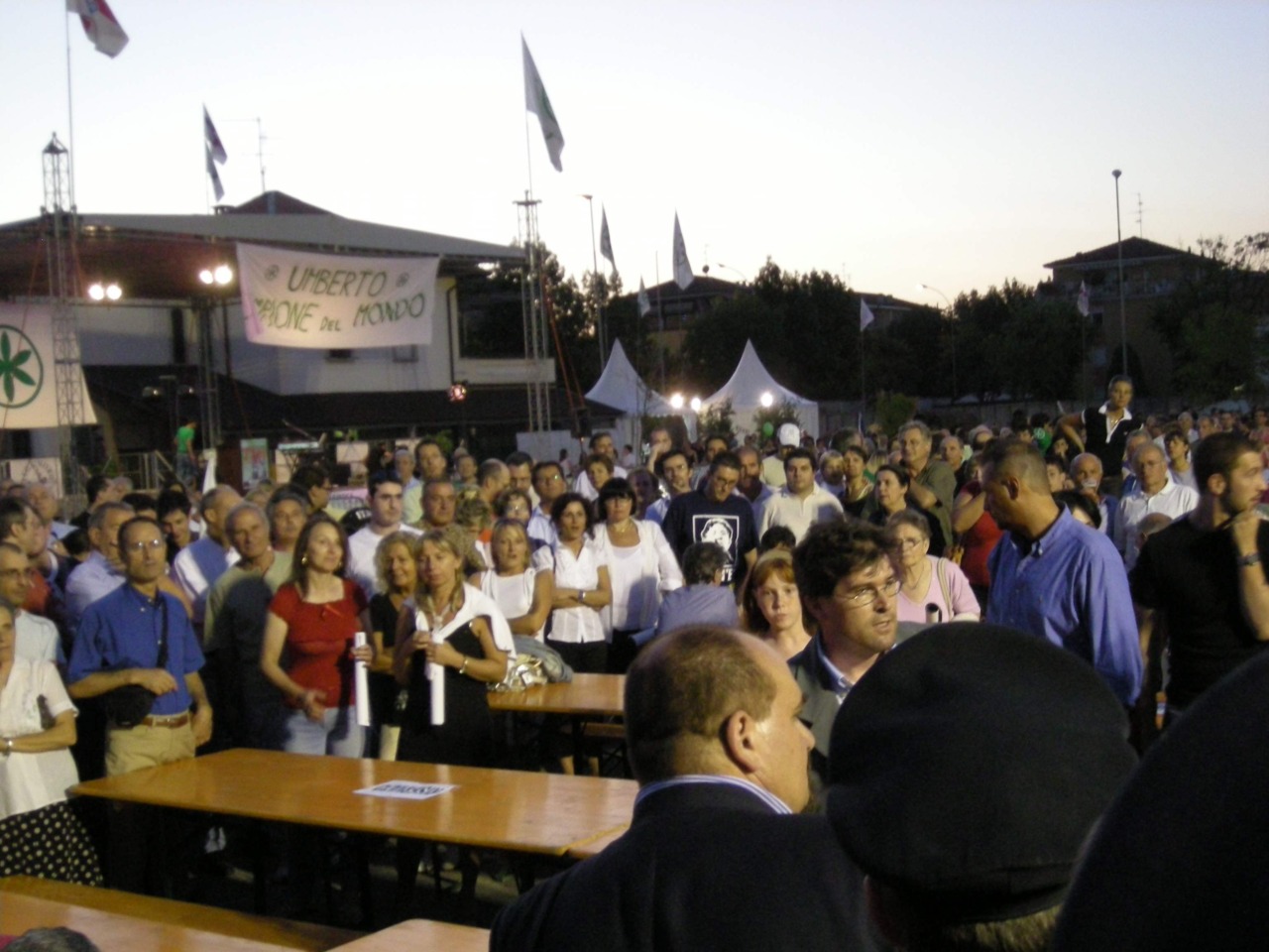 Fu un tripudio in verde, con tanto di annuncio: proprio in quella serata di luglio Bossi lanciò infatti il suo endorsement al compianto Ettore Pirovano – anche lui recentemente scomparso – a candidato presidente della Provincia di Bergamo, nelle elezioni dell’anno seguente, che poi vinse. Moltissimi i volti che compaiono nelle fotografie di quella festa, e che ancora oggi calcano i corridoi della politica locale. Dall’allora segretario provinciale Christian Invernizzi al futuro sindaco di Caravaggio Giuseppe Prevedini, fino all’attuale capo del Carroccio trevigliese Franco Giussani, già all’epoca in prima fila con Bossi.