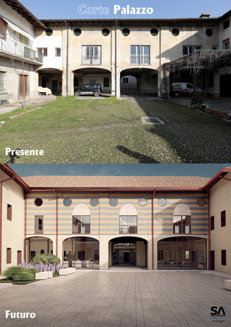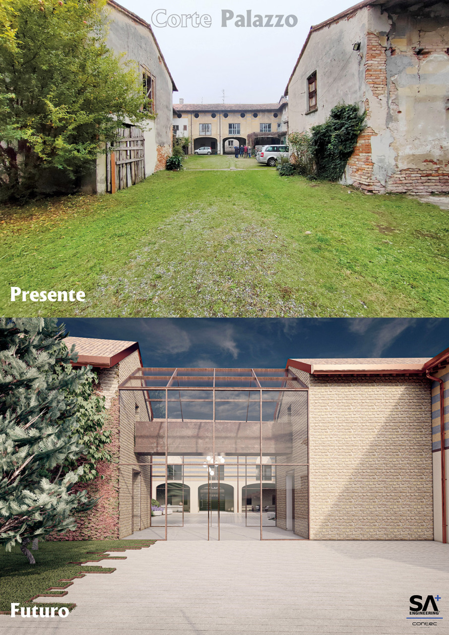 D’altronde, le corti di proprietà della Cooperativa Agricola – da Corte Bani e Corte Biolcheria, passando per Corte Palazzo ed arrivando sino a Corte Masserizia e Cascina Zoglio – rappresentano circa il 40% del tessuto urbano del centro storico del paese e il loro recupero funzionale va anche nel solco della legislazione regionale che impone tagli al consumo di nuovo suolo agricolo per interventi edilizi e produttivi. Al tavolo dei relatori, oltre al presidente della Cooperativa Agricola e all’architetto Castelli, c’erano il sindaco Fabio Ferla che con la sua Amministrazione ha un continuo dialogo e segue con attenzione l’evoluzione di questa proposta di rigenerazione urbana, il consigliere regionale Jonathan Lobati (presidente della V Commissione permanente – Territorio, infrastrutture e mobilità) e il consigliere comunale Gabriele Sangalli, membro del CdA del Consorzio delle Acque Irrigue. Il presidente Invernizzi ha posto l’accento sulla scelta, coraggiosa, fatta dal nuovo Consiglio di Amministrazione della Cooperativa Agricola di mettere mano al proprio patrimonio immobiliare, non per venderlo (o svenderlo) ma per restituire alla comunità spazi destinati alla residenza, ma anche a rispondere alle necessità delle nuove generazioni e non solo. Nei dettagli, invece, delle scelte progettuali è entrato l’architetto Castelli che con un giovane team di professionisti ha studiato il complesso recupero funzionale delle corti.