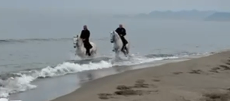 Pasquale Beretta e Andrea Bocelli insieme a cavallo a Forte dei Marmi.