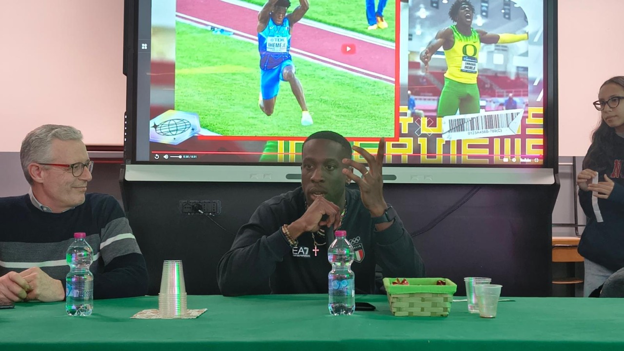 E’ tornato a percorrere quei corridoi che per anni sono stati la sua seconda casa, riabbracciando gli insegnanti che l’hanno visto crescere e parlando con quei ragazzi che oggi lo guardano con ammirazione. Emmanuel Ihemeje, ormai atleta affermato e forgiato all’Atletica Estrada di Treviglio, è stato l’ospite d’onore della giornata dell’orientamento che si è tenuta venerdì all’Ic di Verdellino-Zingonia.