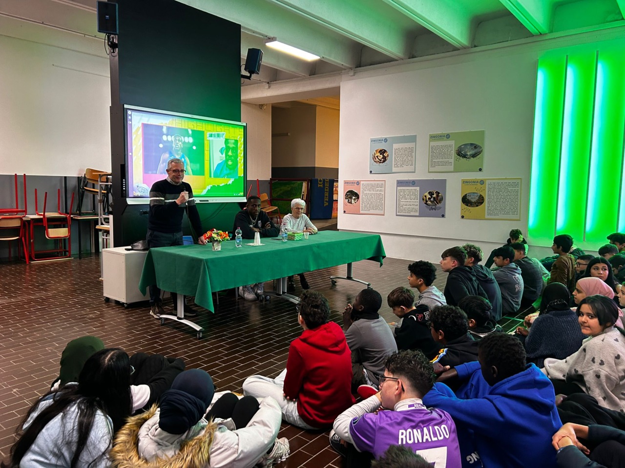 Presenti, venerdì mattina, oltre al dirigente scolastico Eugenio Mora e alla storica dirigente Rita Rovaris, anche il sindaco Silvano Zanoli, ma soprattutto gli studenti e le studentesse di terza che lo hanno ascoltato con entusiasmo e partecipazione e l’hanno poi circondato per riuscire a portarsi a casa un autografo.