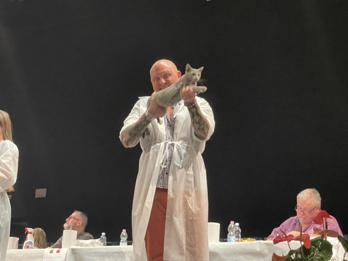Ginette, Blu di Russia di 4 anni, con il suo mantello corto argentato, il corpo affusolato e i grandi occhi verdi ha conquistato la giuria internazionale che non ha avuto alcun dubbio nell’assegnarle la medaglia d’oro. Originaria della Polonia è l’orgoglio più grande della sua allevatrice, la bergamasca Luigina Bertaglia.