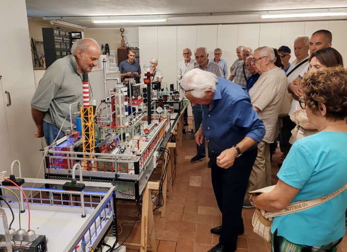 Per chi ancora non conosceva la genialità e la manualità dell’ex attrezzista e manutentore, il viaggio alla scoperta dei suoi impianti in miniatura e del loro funzionamento, ha lasciato a bocca aperta. Tante le domande e le curiosità che i “colleghi” Maestri del Lavoro gli hanno posto mentre Franco Ferla, da perfetto cicerone, schiacciava tasti e sbloccava meccanismi elettronici per dare corrente dalla centrale nucleare all’impianto di raffinazione, montati uno accanto all’altro nello scantinato di casa. Grande curiosità ha suscitato come il 78enne riesca a riciclare materiali, anche obsoleti rispetto all’odierna tecnologia, elettrici ed elettronici “piegandoli” alle necessità dei propri modellini. “Ci sarebbe da far venire le scuole in visita ogni settimana”, ha commentato qualcuno soddisfatto anche dalle spiegazioni che il geniale inventore ha dato su quello o quell’altro impianto in miniatura. Al termine della visita, dopo una foto tutti insieme, il padrone di casa ha offerto ai Maestri del Lavoro ospiti un rinfresco di saluto… alla prossima visita guidata.
