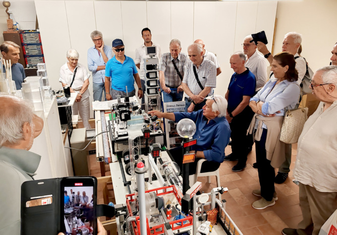 Impianti di produzione perfettamente funzionanti, dalla linea di montaggio delle schede elettroniche della ditta “Prandoni” di Treviglio – che nella seconda metà del ‘900 produceva televisori – sino alla centrale nucleare e alla piattaforma di raffinazione, passando per l’intera linea di assemblaggio dei trattori, rimasta attiva sino a poche decine di anni fa all’interno dello stabilimento della multinazionale del trattore e delle macchine agricole. Li hanno visitati, guidati dal loro geniale creatore Franco Ferla, 78enne di Calvenzano, una nutrita rappresentanza dei Maestri del Lavoro di Bergamo che giovedì scorso, nel pomeriggio, è stata accolta dal “collega”. Accompagnati dal Console provinciale Alberto Caldara e dalla vicesindaco di Calvenzano Sara Ferrari, i Mestri orobici hanno seguito un vero e proprio “clinic” sugli impianti in miniatura con Ferla che ha illustrato, ad una ad una, il funzionamento delle sue creature. Da quella più “semplice”, sino ad arrivare ai modellini più complessi creati negli ultimi anni, assemblando pezzi ritrovati in discarica – recuperati da frigoriferi, forni, climatizzatori smaltiti o altri elettrodomestici – e altri acquistati online per arricchire di effetti speciali la piattaforma petrolifera, ad esempio, così come la centrale nucleare o la raffineria di gas e petrolio e renderle ancora più verosimili nel funzionamento. Aggiungendo anche, altro tocco di genialità, la domotica per controllare l’accensione e lo spegnimento delle luci nei vari reparti dei modellini.