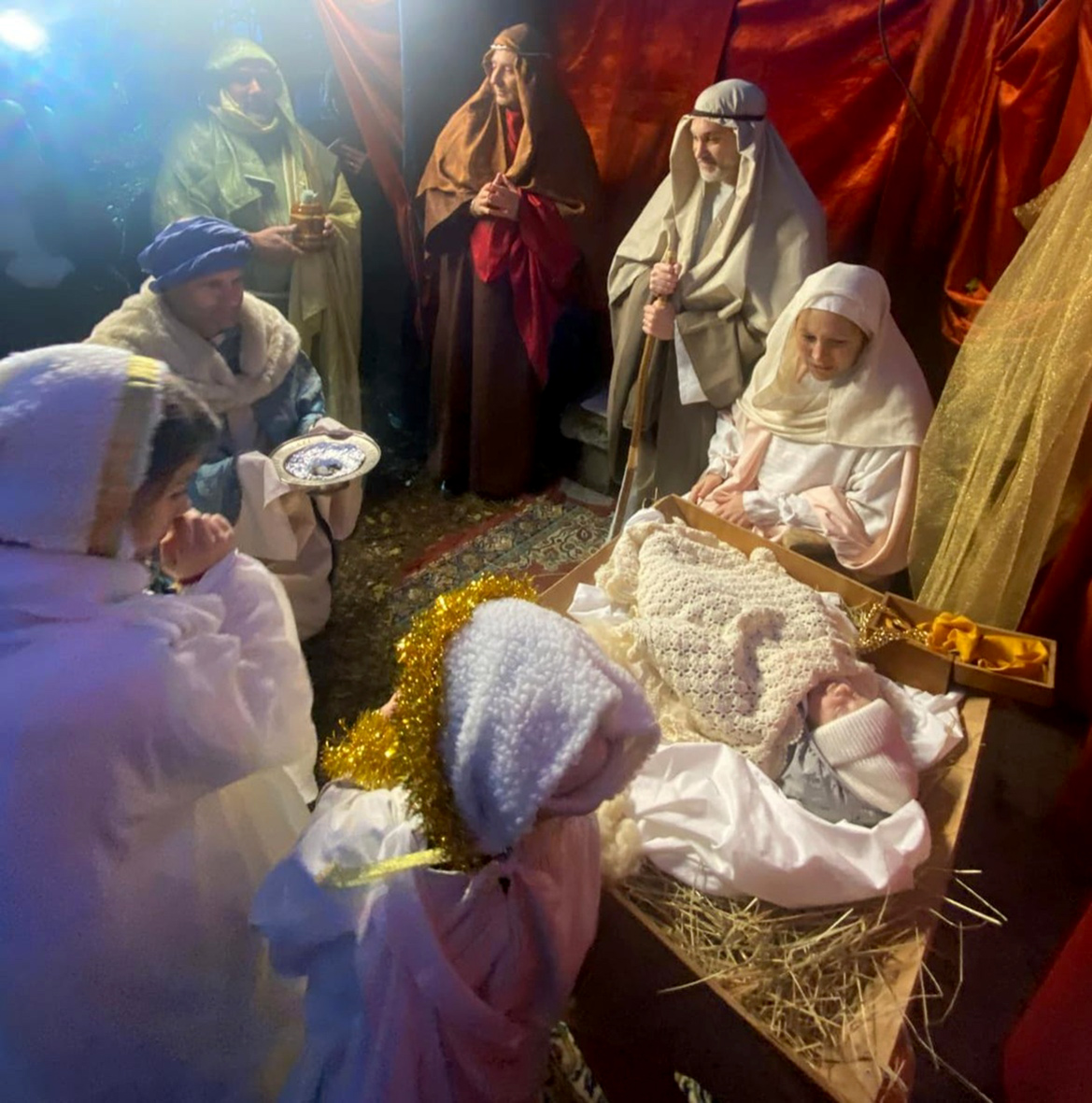 I volontari hanno sapientemente posizionato luci e bracieri, con il buio della sera tutto è diventato più suggestivo e coinvolgente. I più piccoli erano affascinati dal fuoco vivo e avrebbero fatto notte intorno ai bracieri. Per chiudere, tutti vicino alla capanna, è stato intonato un canto tradizionale fatto dai bambini e dalle bambine, il parroco don Matteo ha lasciato l’attività di materassaio e ha guidato una breve preghiera, fatto i ringraziamenti di rito, in particolare alla famiglia Fedrici per la calorosa accoglienza al presepe vivente e a tutti i visitatori.