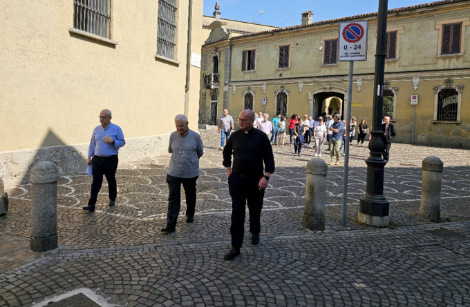 Il Santuario della Madonna delle Lacrime, la Basilica giubilare San Martino e lo spazio espositivo “La Porta del Cielo” hanno ospitato l’incontro annuale della Diocesi di Bergamo. Organizzato nella mattinata di mercoledì 18 giugno, l’evento ha portato in città un folto gruppo di laici e sacerdoti guidati dal vescovo Francesco Beschi, che è stato accompagnato dal parroco uscente monsignor Norberto Donghi, dal suo successore don Zaccaria Bonalumi e da Franco Riz del Consiglio Affari Economici della Comunità pastorale della Madonna delle Lacrime durante la visita dei luoghi simbolo del culto trevigliese, dove non sono mancati i momenti di raccoglimento e preghiera.