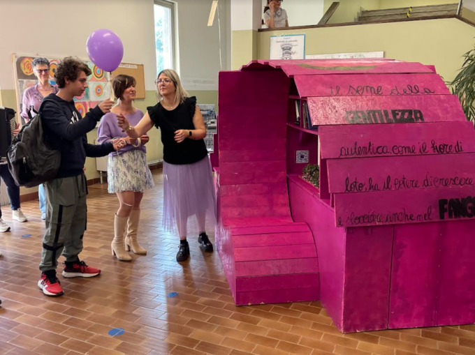 “L’obiettivo era quello di trasmettere il senso civico tramite un’attività pratica”, ha dichiarato la professoressa Ciancia che con la professoressa Rossi ha seguito i ragazzi durante il concorso. I cinque studenti della 2H che hanno vinto sono Matteo Baroni, Alessandro Cassani, Gabriele Ciseria, Tommaso Martinelli e Giovanni Zanotti. Il loro progetto, che è stato installato fuori dalla scuola, è un riadattamento della panchina già esistente, completata con materiali di riciclo come bancali o tubi di ferro. E’ stata dotata anche di un portabici e di un QR code per accedere al sito della scuola e sullo schienale reca la citazione di Sofocle “La gentilezza fa nascere gentilezza”.