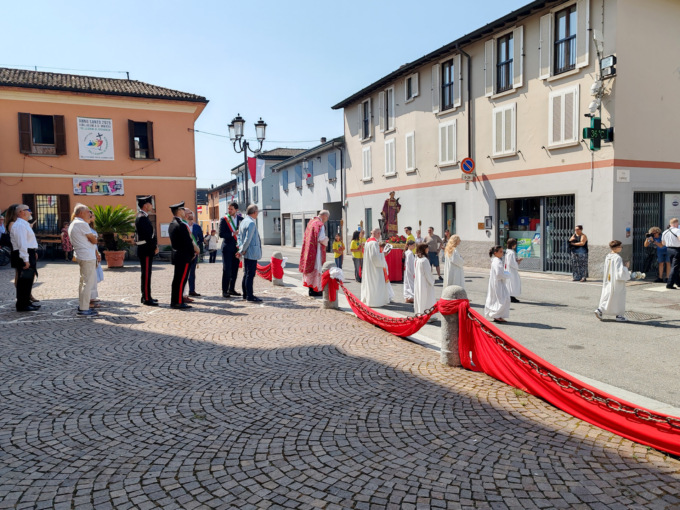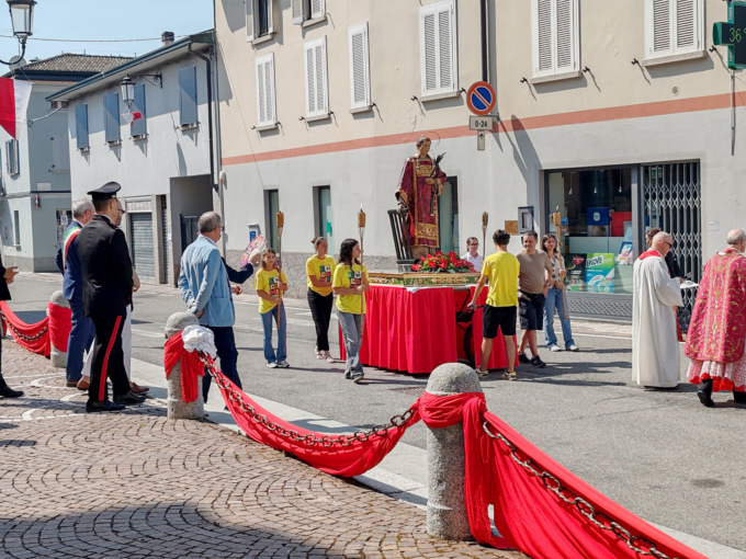 Porterà il nome del patrono di Misano, San Lorenzo, da oggi in poi la corte del Municipio in via Roma. L’intitolazione del cortile comunale si è svolta stamattina durante le celebrazioni religiose in onore del Santo patrono. Alle 10 nella chiesa parrocchiale don Stefano Zoppi e don Gianpaolo Maccagni, vicario episcopale, hanno concelebrato la Messa solenne, al termine della quale, autorità, associazioni e tanti misanesi hanno portato in processione, accompagnati dal Corpo musicale di Vailate, lungo le vie del paese la statua del patrono, prima di rientrare nella parrocchiale per la benedizione. Conclusi i riti religiosi, nel cortile del Comune il sindaco Ivan Tassi, dopo la benedizione impartita dal parroco e l’esecuzione dell’Inno nazionale da parte della banda, ha svelato la targa della “Corte San Lorenzo”. Ai festeggiamenti patronali hanno preso parte il consigliere regionale Ivan Rota (Forza Italia), i sindaci di Calvenzano Fabio Ferla e di Capralba Damiano Cattaneo e il maresciallo Giuseppe Barbieri della Stazione Carabinieri di Caravaggio. Questa l’incisione dedicata a San Lorenzo.