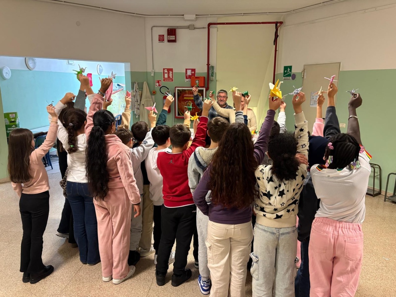 Alcune classi dell’Istituto Comprensivo “E. Fermi”, coordinate dalle docenti e da Fabio Prati , da sempre impegnato in iniziative in favore della pace, hanno accolto con entusiasmo la proposta di partecipare al progetto. L’obiettivo era ambizioso: realizzare il maggior numero possibile di gru con la tecnica degli origami, trasformando un semplice foglio di carta in un messaggio di speranza. L’iniziativa ha coinvolto non solo gli alunni e le alunne, ma anche le loro famiglie. Genitori e figli hanno lavorato fianco a fianco, condividendo tempo e significato, fino a realizzare oltre mille gru. Un risultato straordinario, frutto di collaborazione, sensibilità e partecipazione collettiva.