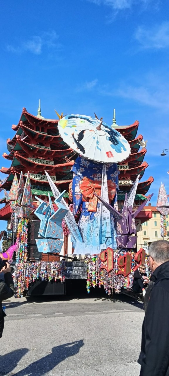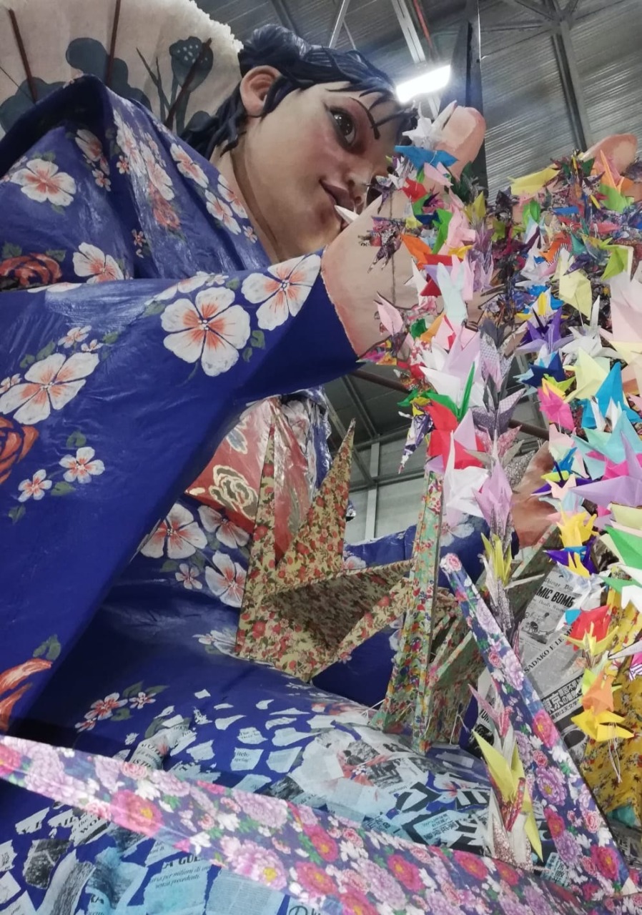 Le gru della pace hanno trovato posto sullo stupendo carro “999”, realizzato da Carlo e Lorenzo Lombardi, padre e figlio, amici del Giappone. Tra colori, musica e creatività, il carro si è fatto portavoce di un messaggio profondo, dimostrando come anche una manifestazione festosa possa diventare occasione di riflessione. Ma il viaggio delle gru non si conclude a Viareggio. Al termine delle celebrazioni del Carnevale, questi piccoli simboli di carta voleranno idealmente fino al Parco della Pace di Hiroshima, in Giappone, luogo della memoria e della speranza. Un gesto che unisce continenti e generazioni, ricordando che la pace è un impegno quotidiano, fatto anche di piccoli grandi gesti. E che, sulle ali leggere di una gru di carta, può continuare a viaggiare intorno al mondo.