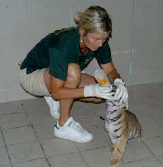 Una keeper del Parco Faunistico Le Cornelle con Romeo, 14 anni fa