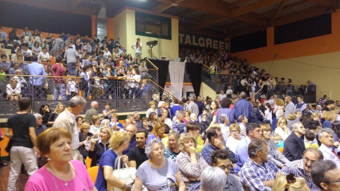 Attirati dall’ospite d’onore, furono migliaia i paloschesi che inondarono letteralmente l’auditorium Paolo VI, dove dopo il taglio del nastro della scuola era stato organizzato un concerto lirico dell’Orchestra filarmonica italiana di Brescia (sul podio il maestro Giuseppe Sabbatini). Baudo, ovviamente, presentò il concerto, ma non mancò di visitare la nuova struttura della comunità Shalom e di elogiare il lavoro di suor Rosalina e dei suoi accoliti.
