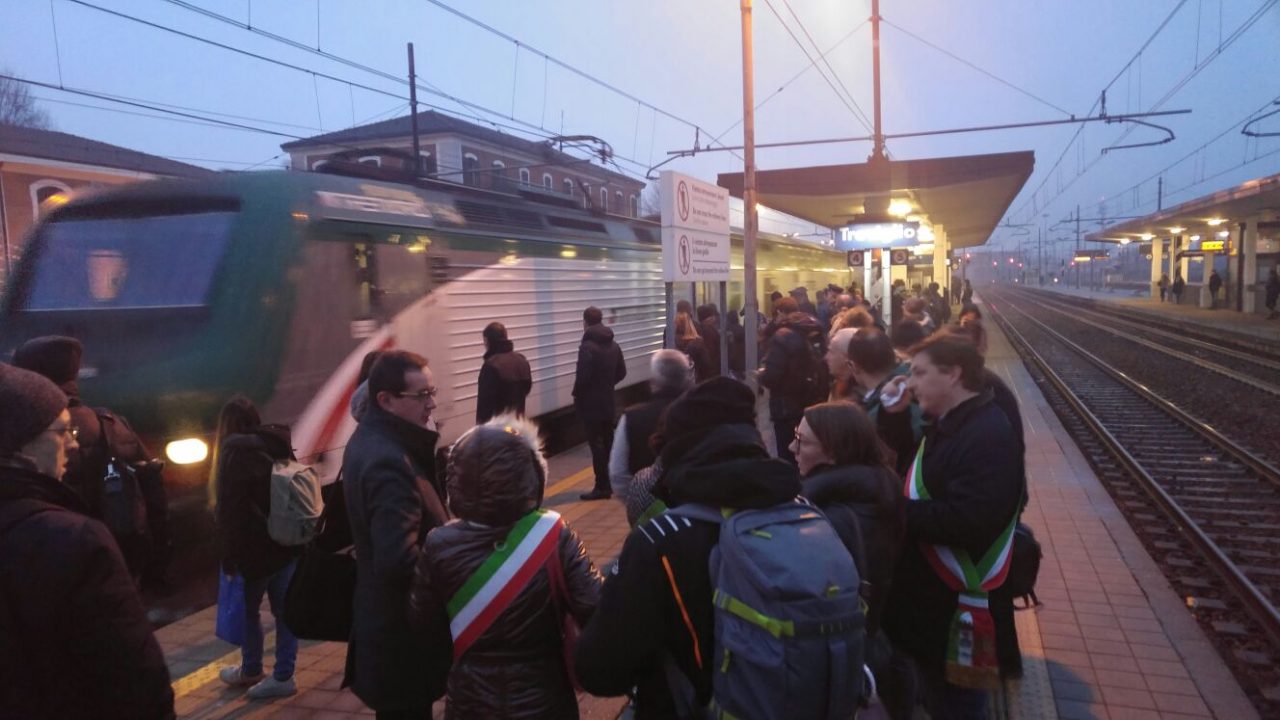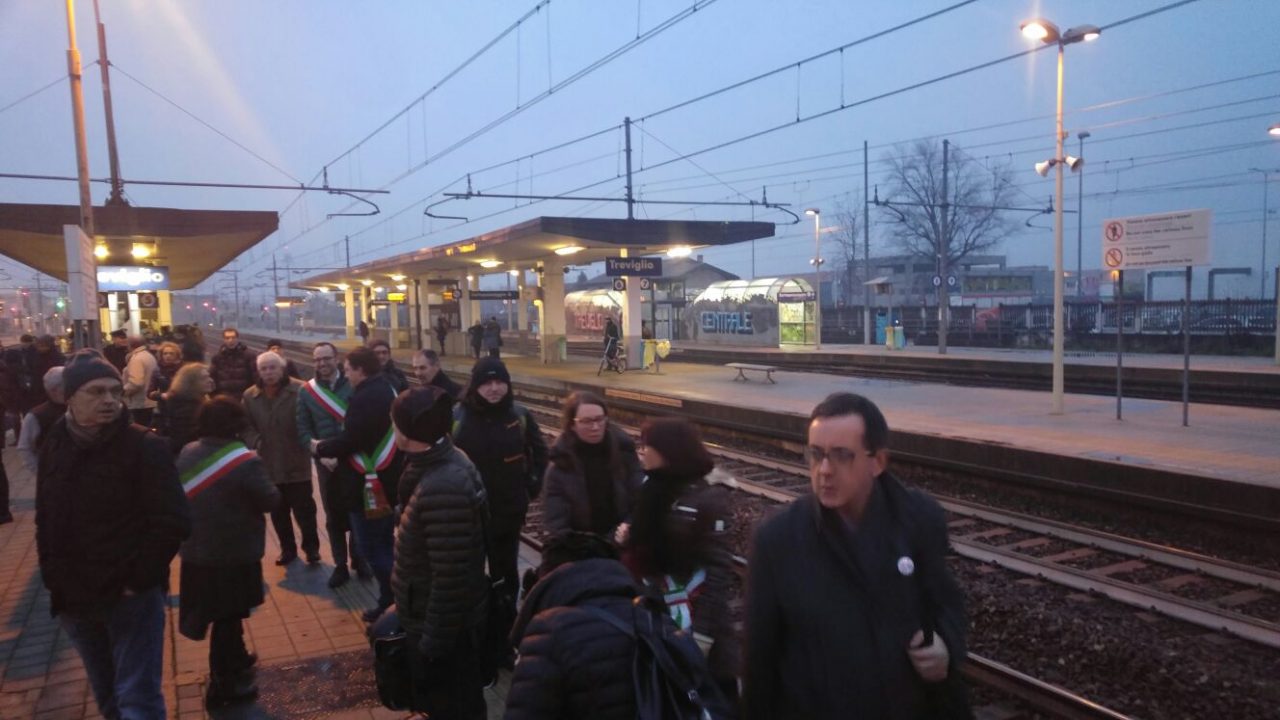 Alla stazione centrale di Treviglio il sindaco Juri Imeri attende il treno sulla banchina, con lui molti colleghi della Bassa. Fa freddo e si stringono anche loro nei cappotti, come fanno i pendolari tutte le mattine. Con lui anche il sindaco di Castel Rozzone Giusy Finardi, Pino Fossati di Mozzanica, Daisy Pirovano di Misano e Valentina Tugnoli. Qui il passaggio di testimone tra le istituzioni cremasche e quelle bergamasche. Continueranno loro verso Lambrate, passando dal luogo del disastro, a Pioltello, dove questa mattina i sindaci della zona si sono ritrovati per un momento di raccoglimento.