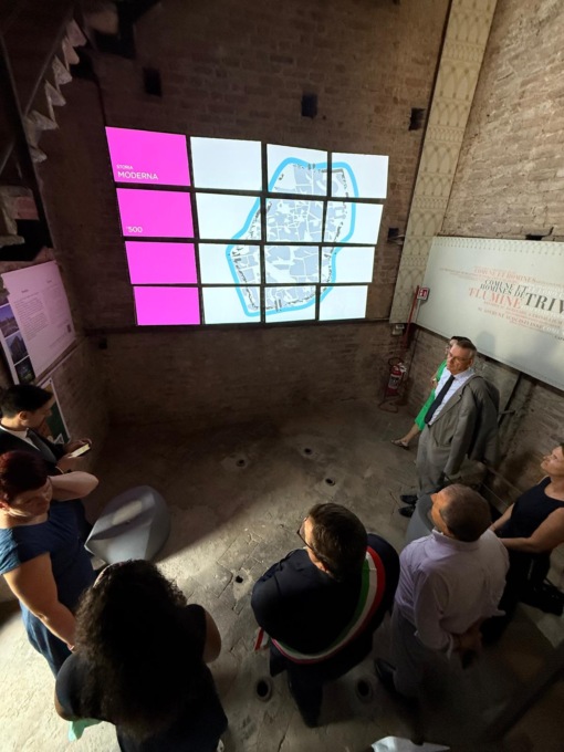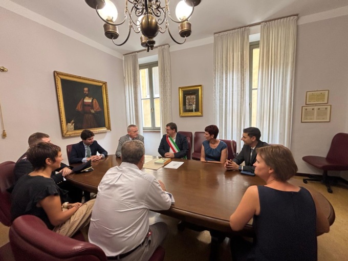 Ad accompagnare gli ospiti, oltre al sindaco, anche gli assessori Basilio Mangano e Michele Bornaghi, il vice comandante della Polizia locale Giacomo Bocchi, la responsabile dell’ufficio Cultura e dei Musei cittadini Elisabetta Ciciliot, il funzionario dello staff di TreviglioMusei Beatrice Resmini e le volontarie dello spazio espositivo “La Porta del Cielo”. La visita è iniziata dalle sale principali del Palazzo comunale (Giunta, Consiglio e Torretta), per poi proseguire al Museo Storico Verticale nella Torre Civica che ha offerto un suggestivo racconto della storia di Treviglio, dalla fondazione ai giorni nostri, culminato con la salita all’ultimo piano della torre.