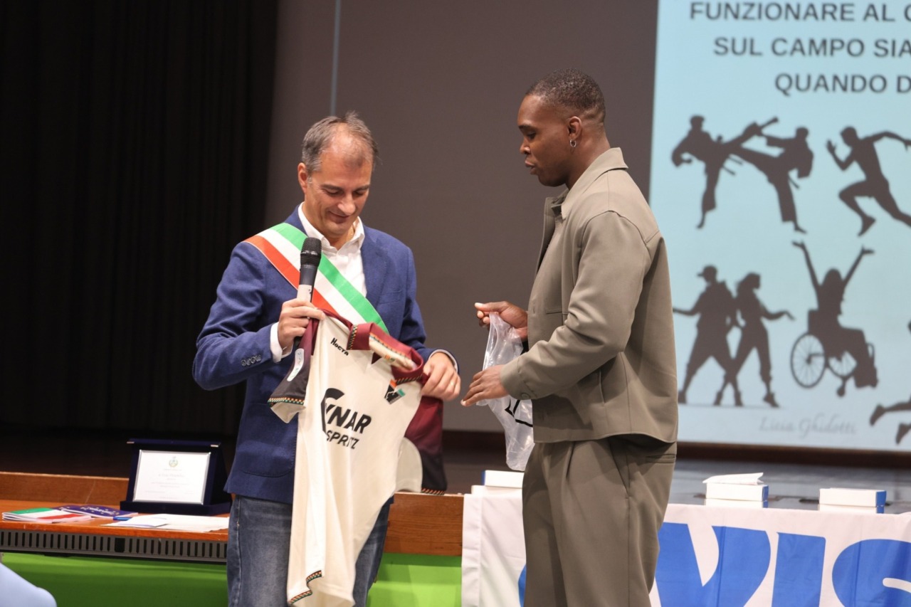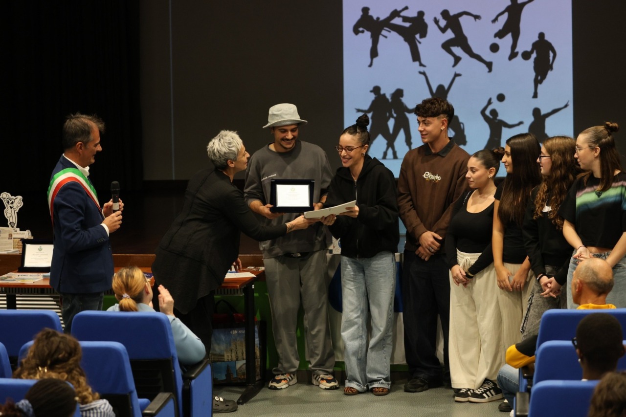 Durante la cerimonia, sono stati premiati gli studenti e gli atleti che si sono distinti per meriti scolastici e sportivi. Tra i premiati, la squadra di calcio “Sporting OVZ”, per i brillanti risultati alla “Philadelphia Junior Cup 2025″, la squadra di danza hip-hop 2Vibe Zone Checkmate”, l’atleta Riccardo Giovannelli e il calciatore Issa Doumbia, assenti per impegni agonistici le loro targhe e pergamene sono state ritirate dal campione Francesco Nicotra e dal fratello e agente di Issa.