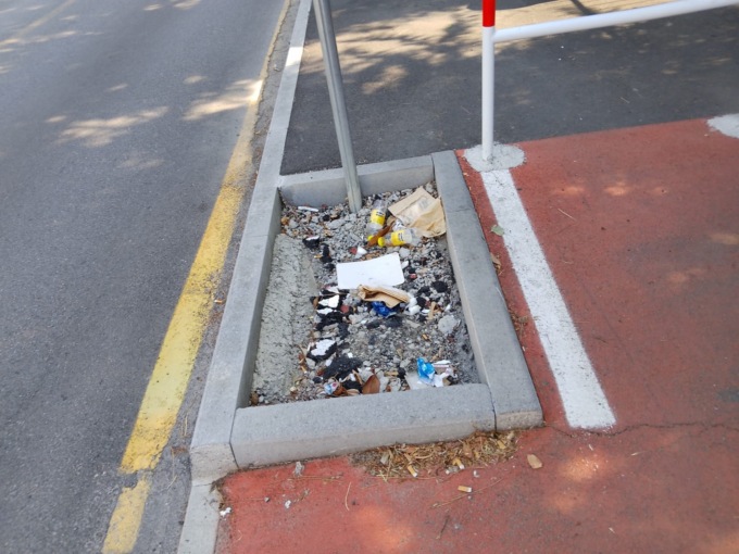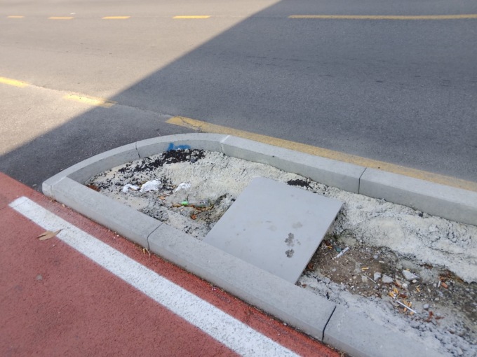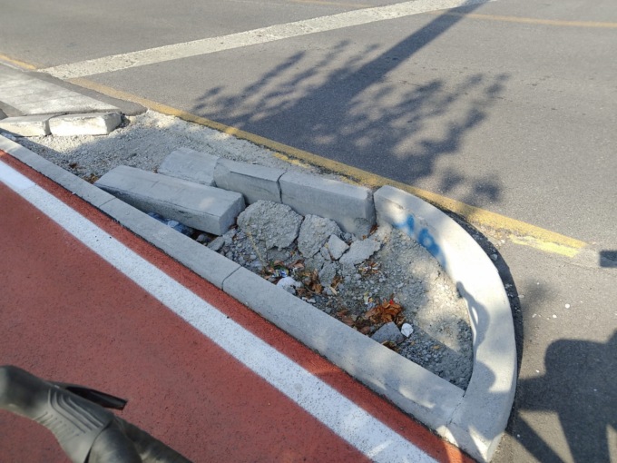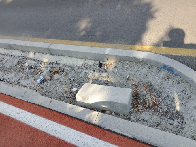 Oltre ai cordoli rotti, a colpire è lo stato delle aiuole che costeggiano la nuova ciclabile. Spazi che, secondo progetto, dovevano ospitare piante, fiori e alberature urbane, oggi si presentano come contenitori improvvisati di rifiuti. Bottiglie, sacchetti, cartacce e persino un panettone in cemento abbandonato all’interno di una di esse, ribaltato e posizionato da qualcuno “per comodità” in prossimità di una curva. Una scena che non solo stride con l’idea di riqualificazione urbana, ma offre un pessimo biglietto da visita per chi arriva in città. In attesa del previsto riempimento con terreno e vegetazione, le aiuole sono rimaste in uno stato di abbandono tale da trasformarle, di fatto, in micro-discariche.