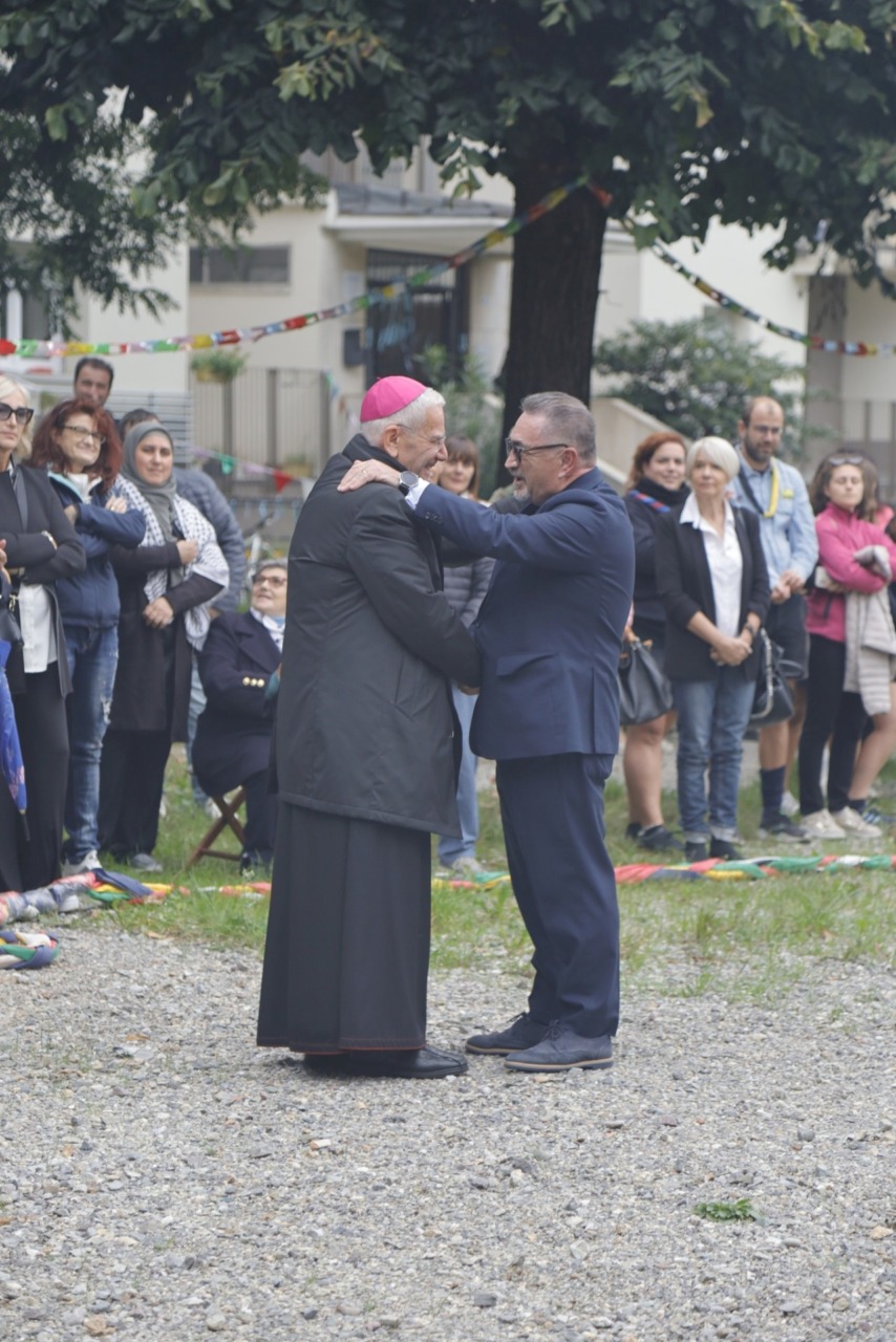 Lì, all’ombra dei condomini “Rinascita”, “La Fenice”, “Oleandro”, “Nuova alleanza” (interessati dai lavori di riqualificazione energetica che ne hanno cambiato il volto), a prendere la parola è il maggiore Tucci. Parla ai residenti, molti di loro divenuti così famigliari negli anni. Parla delle difficoltà, della sofferenza, ma anche dell’impegno e della collaborazione che tutto il tessuto sociale – Comune, Forze dell’ordine, parrocchia, scuola – hanno saputo mettere in campo per dare una nuova occasione a Zingonia. Ma nulla sarebbe stato possibile senza il lavoro svolto ogni giorno dai residenti, sostenuti passo passo dall’associazione che sempre ricorda di “non abbassare mai la guardia perché il pericolo di tornare indietro è sempre dietro l’angolo”.