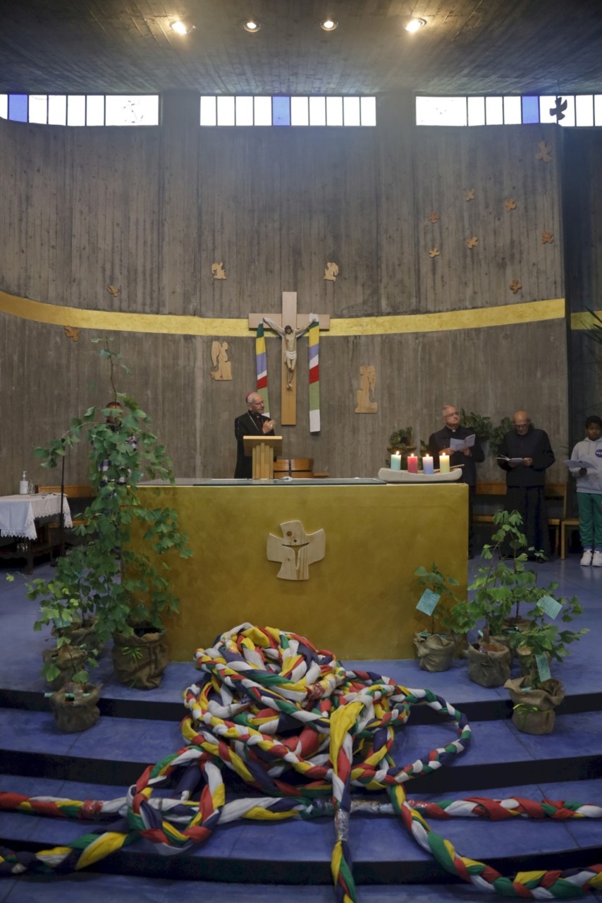 L’ultima tappa del “viaggio” porta il corteo nella chiesa parrocchiale di Maria Madre della Chiesa dove il vescovo ha celebrato la messa.