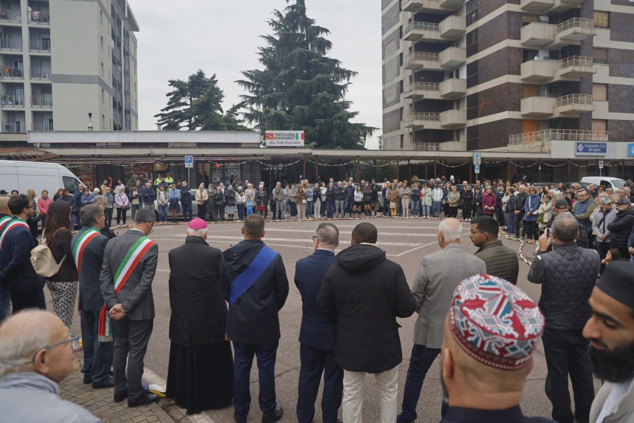 Istituzioni, associazioni, guide religiose, ma soprattutto tanti cittadini, un’intera comunità unita nel segno della rinascita. E sullo sfondo i luoghi simboli di Zingonia (a Verdellino), quelli che brillavano negli anni del sogno visionario di Zingone e che poi, in un lento declino, sono diventati emblema di degrado.