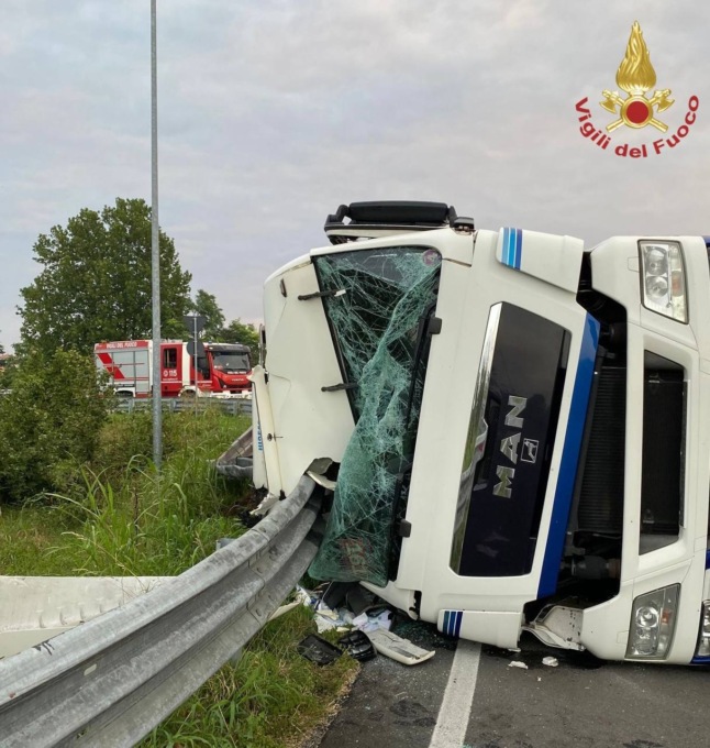 L’incidente è avvenuto intorno alle 5 di questa mattina, 3 agosto, in via Patrioti Romanesi. Non si conosce ancora la dinamica di quanto accaduto, forse un malore o una manovra sbagliata e il Tir, condotto da un 41enne, è finito per ribaltarsi. Il guardrail è finito all’interno dell’abitacolo e l’uomo è rimasto bloccato tra le lamiere.