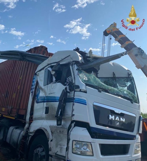Dopo l’impatto il mezzo pesante ha subito anche un principio d’incendio subito domato dai Vigili del fuoco della Centrale di Bergamo e dai volontari di Romano di Lombardia giunti sul posto in pochi minuti. Domate le fiamme, hanno estratto il 41enne e lo hanno affidato alle cure dei soccorritori che lo hanno poi trasferito in ambulanza all’ospedale di Treviglio in codice giallo.
