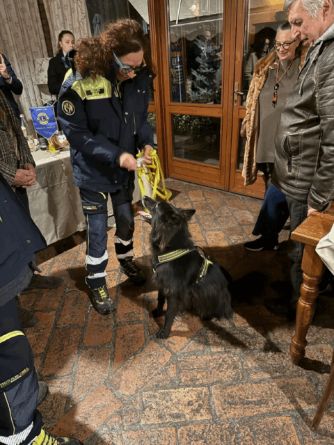 Il momento più atteso è arrivato quando i tre cani hanno dovuto individuare altri volontari Lions “scomparsi”. Prima un’annusata a falsi odori, poi a quelli reali dei tre figuranti nascosti. Al via, gli animali sono scattati in pochi secondi, seguendo la traccia con precisione impressionante fino al ritrovamento: rapido, pulito, impeccabile. La sala è esplosa in un applauso lungo e sincero. Perché vedere da vicino come lavorare queste unità cinofile non è solo emozionante: è un’occasione per comprendere quanto impegno, disciplina e sensibilità si nascondano dietro un salvataggio riuscito.