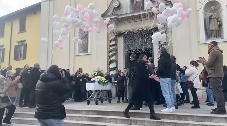 Palloncini bianchi e rosa lasciati liberi in cielo per accompagnare Alessia nel suo ultimo viaggio. La chiesa parrocchiale di Verdello oggi pomeriggio, 5 gennaio 2026, non ha potuto contenere le tante persone che si sono strette attorno alla famiglia della piccola “principessa guerriera” che ha insegnato a tutti il vero valore della vita.