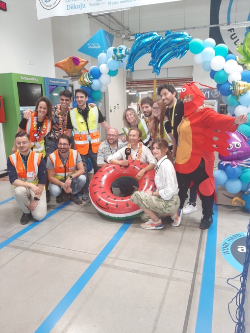 Clima di festa che ha influenzato tutto l’ambiente Amazon con alcuni lavoratori che hanno indossato costumi a tema mare come l’aragosta o gonnellini hawaiani e collane di fiori. Stessi gadjet che anche Militello ha indossato nell’area adibita alla refezione dove ha condiviso un muffin alla marmellata con dipendente che ha intervistato . Conduttore che ha poi spiegato ai radioascoltatori, in maniera goliardica e spiritosa, quello che in tempo reale stava succedendo sotto i suoi occhi. “Oggi abbiamo deciso di organizzare una giornata a tema mare- ha dichiarato l’ufficio stampa di Amazon- Ci piace l’idea di raccontare all’esterno ciò che qui avviene. Per questo abbiamo pensato a una trasmissione radiofonica e R101 ha risposto positivamente. Oggi è un giorno di festa, ma durante l’anno di momenti a tema ce ne sono diversi anche per creare nell’azienda un clima sereno e collaborativo. Per noi ogni persona è importante”.