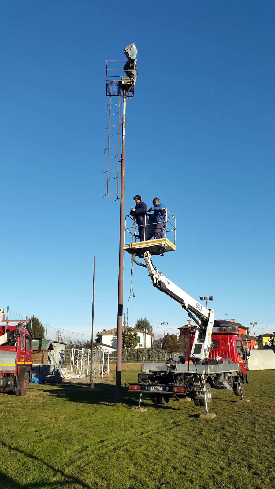 Il forte vento soffiato il 10 gennaio scorso ha provocato la caduta di un palo dell’illuminazione sul campo da calcio a 11. Fortunatamente non si è ferito nessuno e non ci sono stati danni ad altre proprietà. Le verifiche, compiute il giorno seguente dall’ufficio Tecnico insieme ad un professionista esterno, però, hanno evidenziato che la stabilità dei pali era stata compromessa dall’usura del tempo. La ruggine formatasi soprattutto sulla base dei pali, questo è emerso dalla video-ispezione, metteva a rischio crollo anche gli altri tre pali che sono stati rimossi.