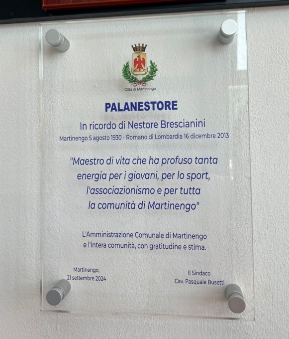 Si è svolta questa mattina, domenica 22 settembre 2024, l’inaugurazione della nuova palestra della scuola ribattezzata PalaNestore in memoria del martinenghese Nestore Brescianini.