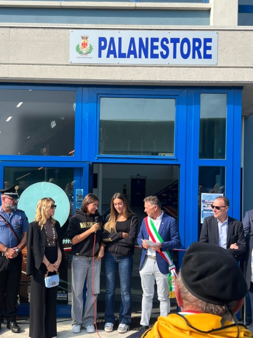Dopo l’Inno nazionale il taglio del nastro è stato affidato alla moglie di Nestore che ha ricevuto anche un omaggio floreale dalle mani della campionesse italiane under Fabiana Cucchi e Vittoria Mioso.