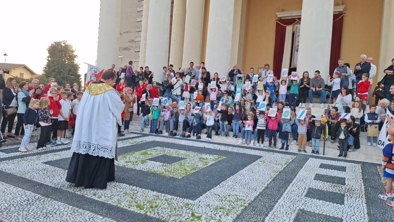 Il nuovo parroco è arrivato nel pomeriggio, al Santuario della Madonna della Consolazione, dove si è svolta una prima celebrazione, arricchita dal soave canto di un coretto di voci bianche. Poi il sacerdote è stato scortato in corteo fino alla chiesa parrocchiale addobbata a festa, sulle note della banda. E tra gli altri a sfilare c’era anche un affezionato gruppo di ex parrocchiani, con stretto fra le mani uno striscione eloquente: “Don Filippo buon viaggio, da Suisio a Ghisalba come meta unica Dio”. Giunto sul sagrato ha trovato una bella sorpresa: sulla scalinata ad accoglierlo c’erano i piccoli allievi della scuola materna, che hanno alzato le loro braccia mostrando ognuno una lettera colorata, a comporre la frase “Benvenuto don Filippo!”. E lui non ha mancato di salutarli, felice. Un caloroso saluto è arrivato anche dal coordinatore della scuola Maurizio Bonin, da Carlo Colombo del Consiglio pastorale e dal sindaco Gianluigi Conti, che tra le colonne del maestoso pronao ha pronunciato un discorso ufficiale.