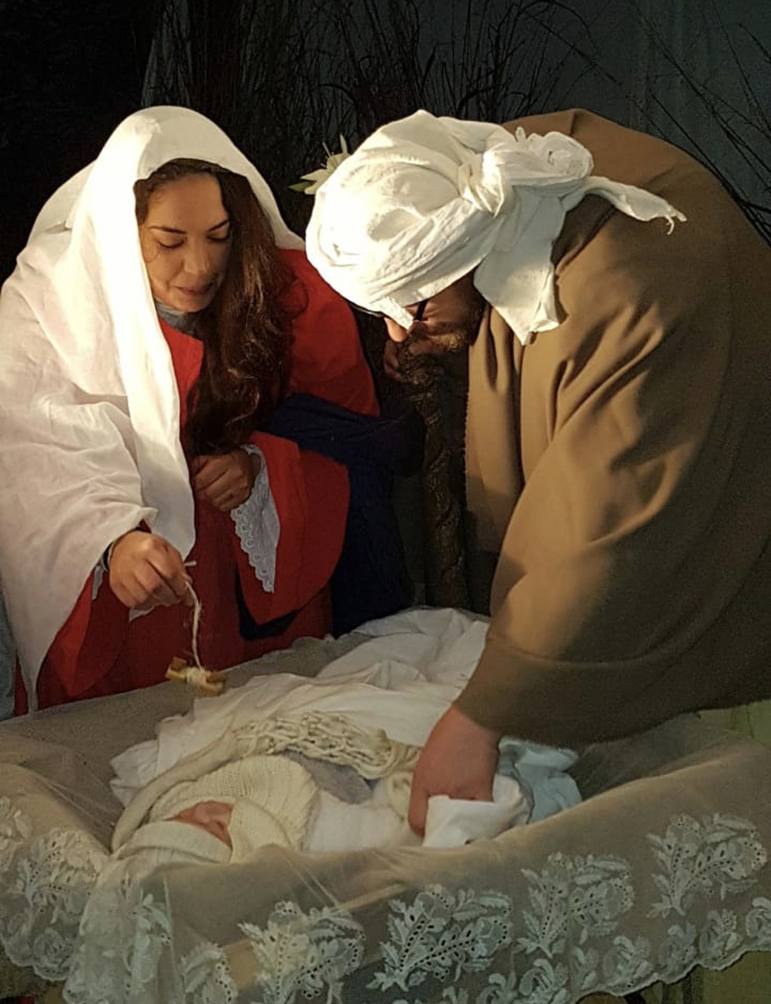 Il presepe vivente è una tradizione che da anni i volontari dell’oratorio San Marco portano avanti. Suggestiva anche la location scelta, il giardino della villa Blondel (oggi palazzo comunale) che domenica scorsa dalle 16 alle 18 si è trasformato nella Betlemme di oltre duemila anni fa. Il centro della scena era tutto per la Sacra famiglia, con Giuseppe interpretato da Roberto Gazzetta, la Vergine Maria dalla moglie Cassandra Astuto e il loro piccolo Federico nei panni e nella “fasce” di Gesù. Una Natività che ha lasciato a bocca aperta, parenti, amici e visitatori, così come la numerose stazioni dislocate nel parco di via Bergamina.