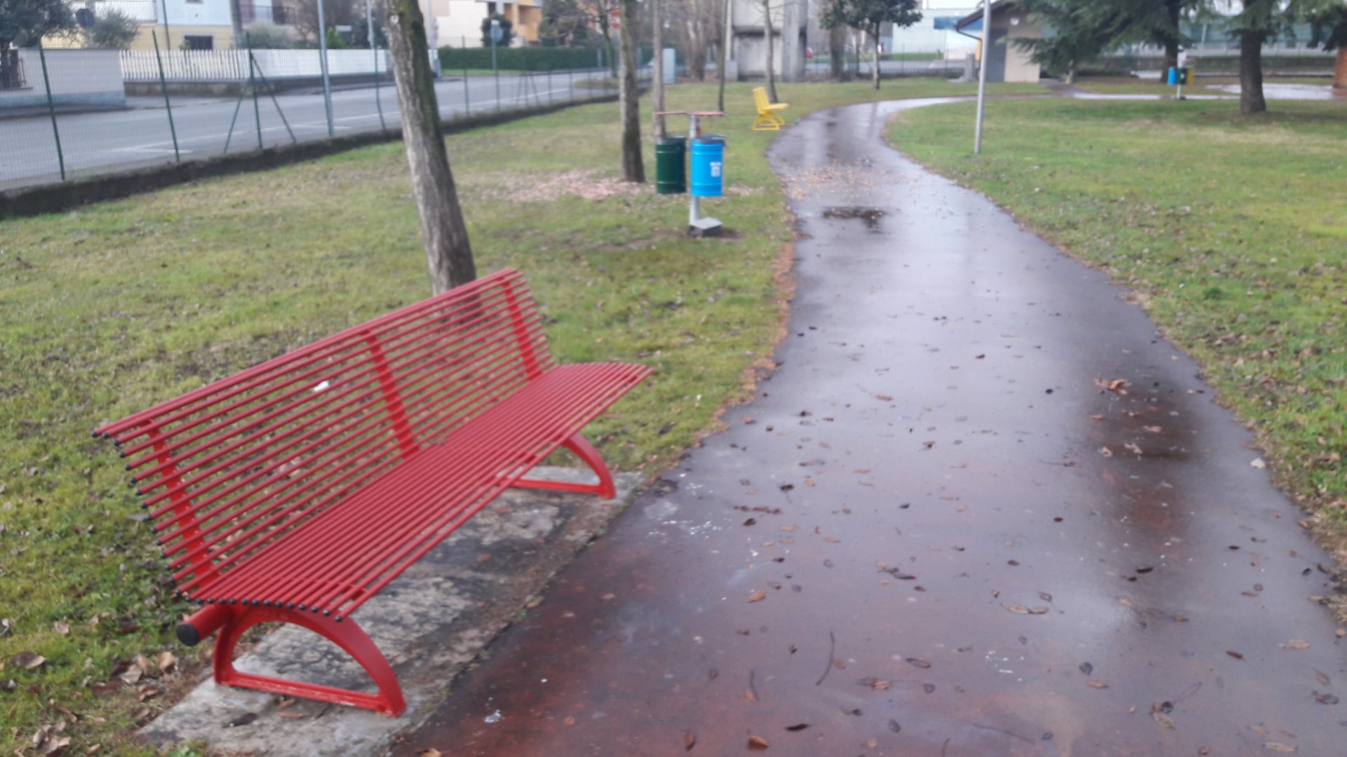 Installate le panchine colorate al parco Arcobaleno di Mozzanica. Vanno a sostituire le vecchie e consunte panchine in legno nell’area verde di via XXV Aprile.