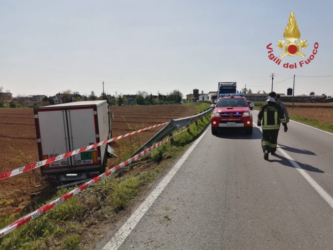 E’ successo questa mattina, 6 aprile, intorno alle 10.40 lungo la Sp 98 a Palosco. Il conducente di un camion, un uomo di 53 anni, ha perso improvvisamente il controllo del mezzo pesante finendo nel campo che costeggia la carreggiata. Sul posto sono intervenuti i Vigili del Fuoco del distaccamento di Romano di Lombardia e di Palazzolo che hanno messo in sicurezza il mezzo e hanno bonificato l’area compromessa.