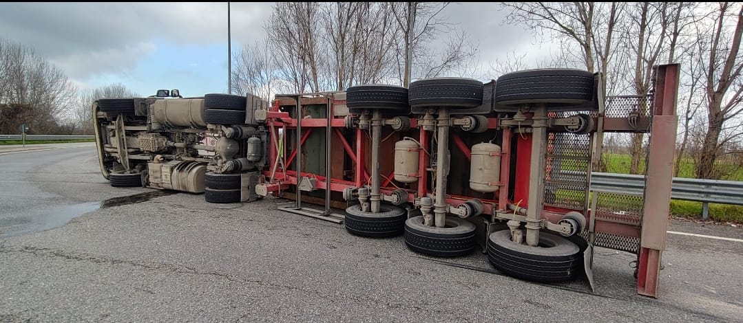Mezzo pesante si ribalta, traffico bloccato