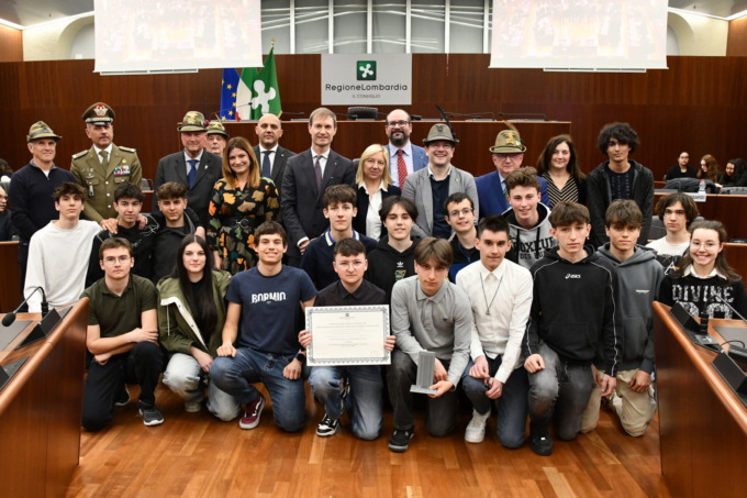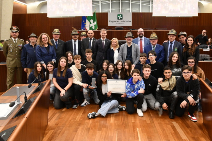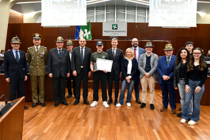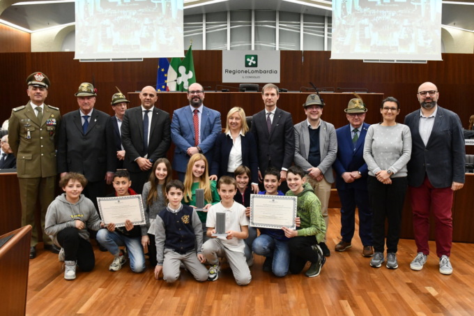 I premi sono stati consegnati questa mattina nell’Aula consiliare di Palazzo Pirelli dal Romani e Cappellari. Al concorso riservato alle scuole secondarie di primo e secondo grado della Lombardia hanno partecipato 10 scuole (6 di primo grado e 4 di secondo grado). Sono stati presentati complessivamente 17 lavori, tra individuali e di gruppo, che hanno coinvolto 159 studenti. Tra le scuole secondarie di secondo grado il primo premio individuale è stato assegnato ad Andrea Giuliano dell’Istituto agrario statale “Gaetano Cantoni” di Treviglio con un video sulla sua esperienza formativa in un campo scuola degli Alpini. Martina Bono del IC “Leonardo da Vinci” di Saronno (VA) ha ottenuto il primo premio nella sezione individuale riservata alle scuole secondarie di primo grado con “Una giornata con gli Alpini”, un testo sui valori delle Penne Nere.