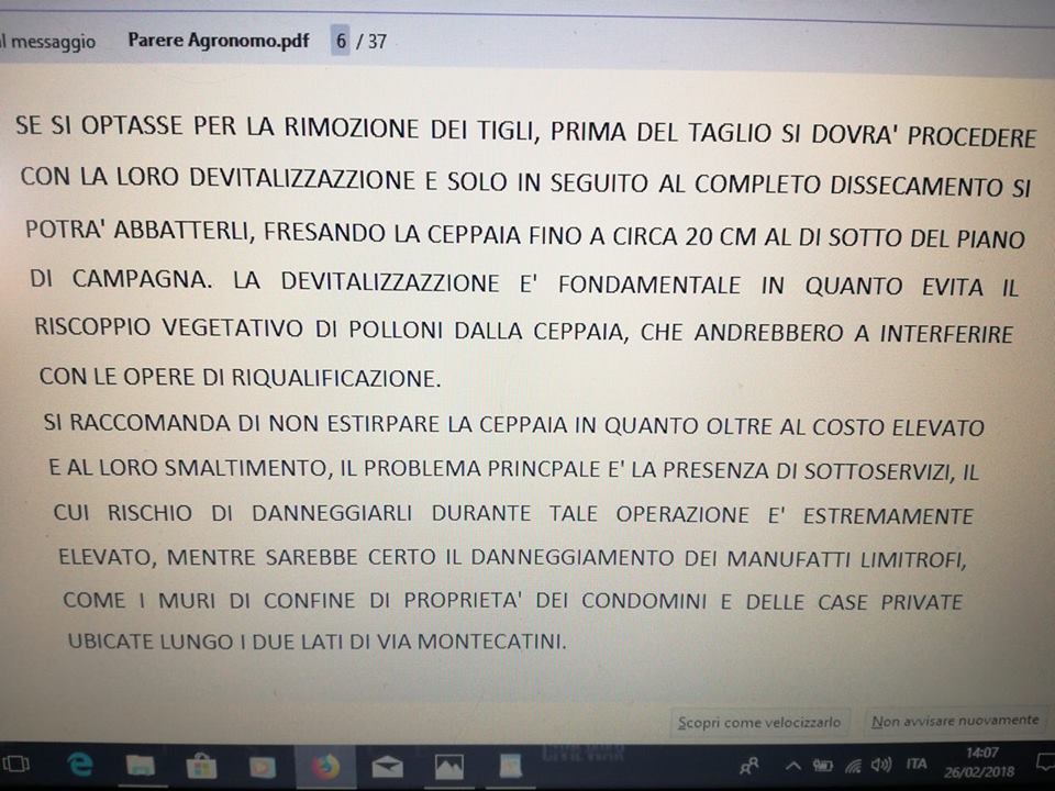 Da subito, stamattina sulla pagina Facebook “Salviamo i tigli di Romano di Lombardia” è stata manifestata la contrarietà all’abbattimento delle piante. I volontari hanno fatto leva sul mancato rispetto di un suggerimento, data dall’agronomo incaricato dal Comune di fare una perizia sullo stato dei tigli. “Stanno abbattendo i tigli ignorando persino i suggerimenti tecnici della relazione agronomica stilata dal dottore agronomo scelto dal Comune (pagato con i nostri soldi)! – hanno scritto sulla pagina “Salviamo i tigli di Romano di Lombardia” -Non hanno effettuato alcuna devitalizzazione e non potranno estirpare le ceppaie”.