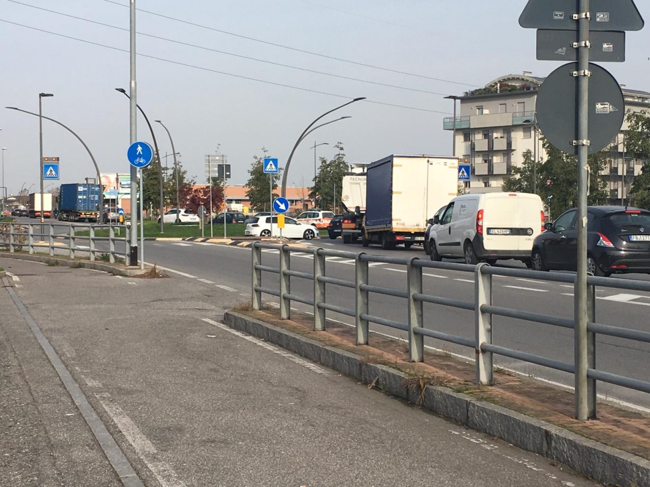 La circolazione scorre molto lentamente da questa mattina a causa del senso unico alternato istituito su via Bergamo all’altezza della nuova rotatoria che serve la nuova area commerciale. Le code si formano costantemente dalla rotatoria fino al semaforo all’altezza del Campo sportivo, ma le conseguenze sul traffico sono molto più ampie.