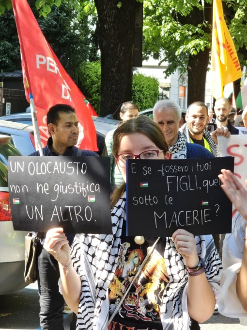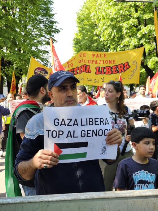 “È importante scendere in piazza tutte le settimane per la Palestina, per chiedere il “Cessate il fuoco”, lo stop al genocidio e lo stop alla complicità del Governo italiano con Israele – ha sostenuto a gran voce Noor Nakhleh di “Giovani palestinesi in Italia” – Spesso qui in Occidente si parla di difendere Israele per diffondere la democrazia. Ma Israele non è una democrazia, è uno stato illegittimo, un regime di apartheid, una potenza occupante. E se sta facendo tutto questo in Palestina è soltanto grazie all’impunità di cui gode e all’appoggio dei governi occidentali. L’Italia indirettamente è responsabile di questo genocidio perché è il terzo maggiore esportatore di armi per Israele, dopo Stati Uniti e Germania”.