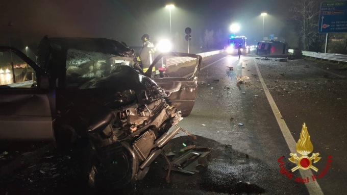 E’ il secondo incidente avvenuto nella notte di Natale 2021: poche ore prima, a Romano, un’auto che trasportava una famiglia di quattro persone tra cui due bambine era finita contro un palo prendendo fuoco.