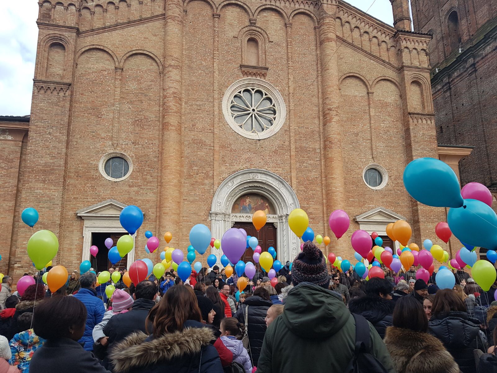 I bambini sono stati inizialmente suddivisi per fascia d’età: quelli della prima, seconda e quinta elementare si sono ritrovati in oratorio insieme ai bimbi della scuola per l’infanzia. Quelli di terza e quarta elementare invece hanno raggiunto il Conventino. Dopo un breve momento di preghiera poi tutti i bimbi si sono messi in marcia verso la piazza della Chiesa, dove intorno alle 15.30 c’è stato il tradizionale lancio di palloncini colorati ai cui fili i bambini hanno legato un messaggio o un disegno che celebrasse la bellezza del dono della vita. Al termine, alle ore 16, è seguita una gustosa merenda per tutti in oratorio.