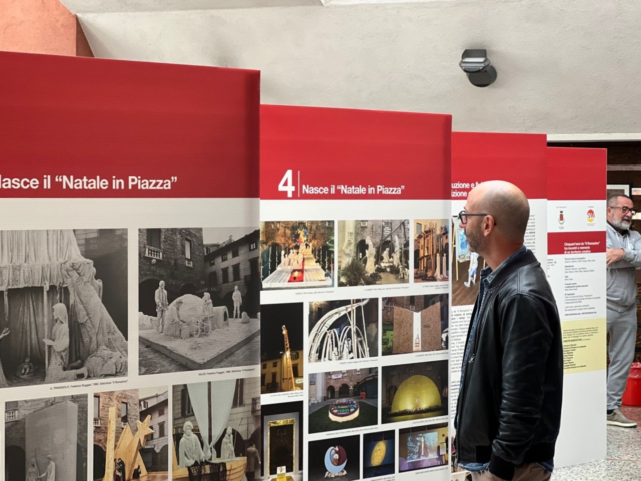 Il percorso si apre con la sezione “Il Romanino. Cinquant’anni di arte, passione e comunità”, che ripercorre la nascita del Circolo e il suo legame profondo con la città. Segue “L’arte che incontra la città”, dedicata alle mostre-mercato che, sin dagli anni Settanta, hanno trasformato le piazze e i portici di Romano in vere e proprie gallerie a cielo aperto, portando l’arte tra la gente e coinvolgendo intere generazioni di appassionati. Un’altra sezione, “Le iniziative culturali e l’avvio della Scuola d’Arte”, documenta l’evoluzione del Romanino da semplice circolo ricreativo a spazio di formazione e sperimentazione artistica, capace di accogliere corsi, laboratori e incontri aperti a bambini, adulti e famiglie. In questo percorso non poteva mancare “Nasce il Natale in Piazza”, la parte della mostra dedicata al Presepe del Romanino, nato nel 1982 da un’idea di Federico Ruggeri e reinterpretato negli anni da artisti come Valentini, Perego, Rossi, Giorgio e Pietro Perego, Corrado Spreafico. Un progetto che, con le sue installazioni urbane, ha saputo unire tradizione e contemporaneità, trasformando la Natività in un’esperienza artistica collettiva e sempre rinnovata.