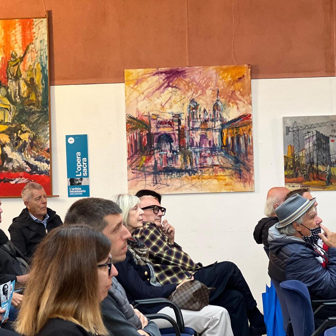 “E’ molto di più di un semplice omaggio, è il commiato che Federico non ha potuto avere a causa delle restrizioni Covid – ha sottolineato l’assessore alla cultura Diego Giudici, durante l’inaugurazione a Palazzo dei Muratori – Ringrazio i presenti e tutti coloro i quali renderanno omaggio a questo artista e al Circolo che per mezzo secolo è cresciuto e si è sviluppato insieme alla Comunità Romanese”.