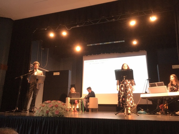 Domenica al teatro della Fondazione Rubini, in ricordo di Don Milani, al quale è intitolato il liceo cittadino si è tenuto un evento culturale e musicale