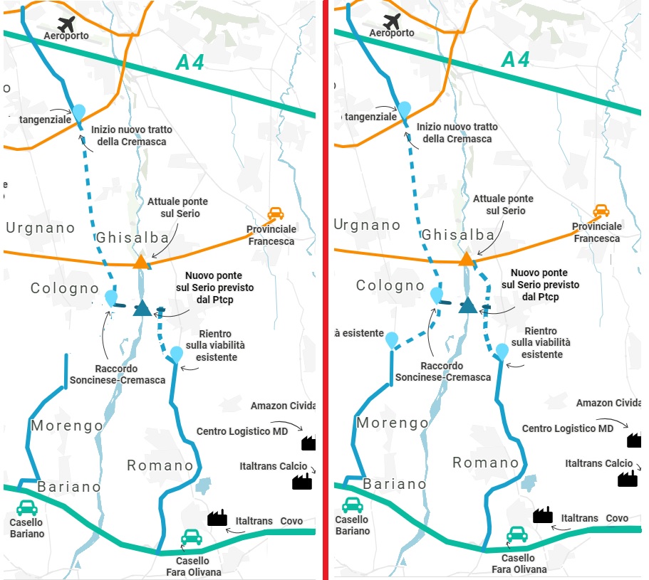 L’arteria per un più veloce collegamento nord-sud della provincia bergamasca è tempo al centro del dibattuto politico dei Comuni della Bassa orientale. Il territorio la attende da anni, anche se sul tracciato condiviso dalla Provincia con le diverse Amministrazioni interessate dal suo passaggio Cologno al Serio ha espresso forti riserve. Secondo il nuovo progetto la strada dovrebbe distendersi per 12,5 chilometri, partendo dall’intersezione tra la Sp 591bis e la Tangenziale Sud a Zanica. Scendendo verso sud, supererà la Francesca fino a Cologno e, edificato un nuovo ponte, agganciarsi alla circonvallazione di Romano, a nord della città per una spesa di 142 milioni di euro.